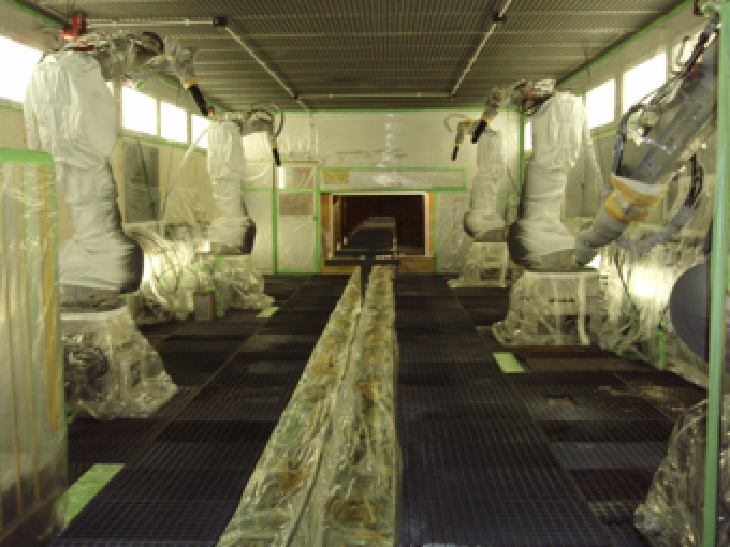 樹脂塗装設備 ブース内 スノコ交換 コンベア